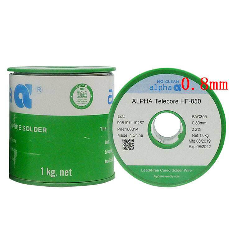 • Product description: Alpha SAC305 HF-850 0.80MM Solder Wire, Wire diameter:0.80MM, 1000g/roll, alloy composition: Tin Silver Copper (Sn96.5/Ag3.0/Cu0.5), Melting point:217-228°C