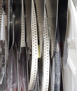 Here’s a closeup of the opening where we feed components into the pick-and-place machine. Now, can you see where the SMD components are in this picture?