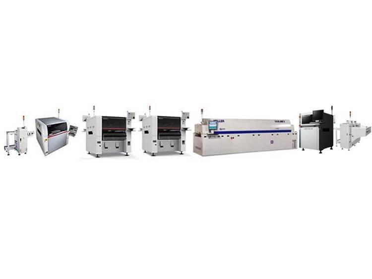 SMT Assembly line, PCB Assembly line, JUKI SMT Assembly Line, Samsung SMT Assembly Line, Hanwha SMT Assembly Line, Panasonic SMT Assembly Line, FUJI SMT Assembly Line, Yamaha SMT Assembly Line.