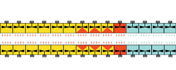 Volumetric flow rate each module, adjustable, up to 500 m3/h